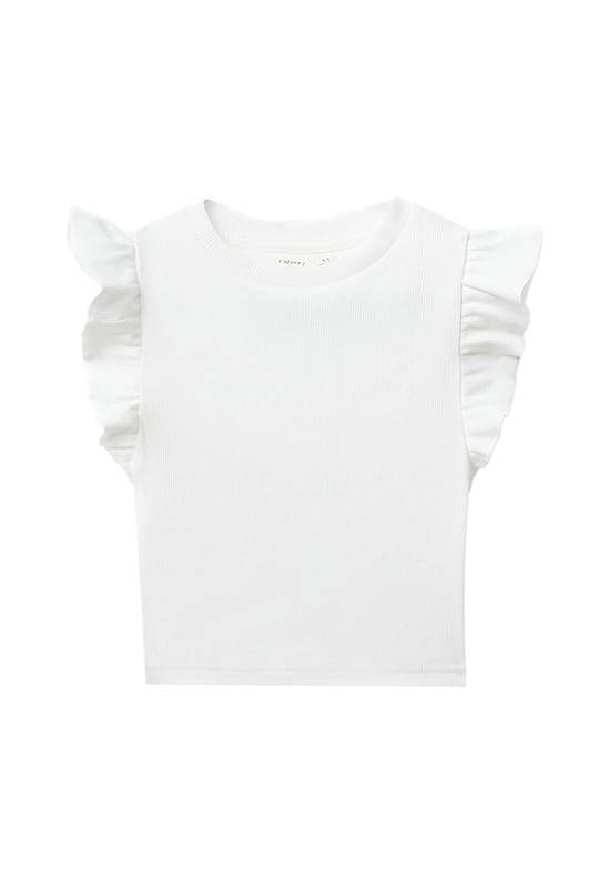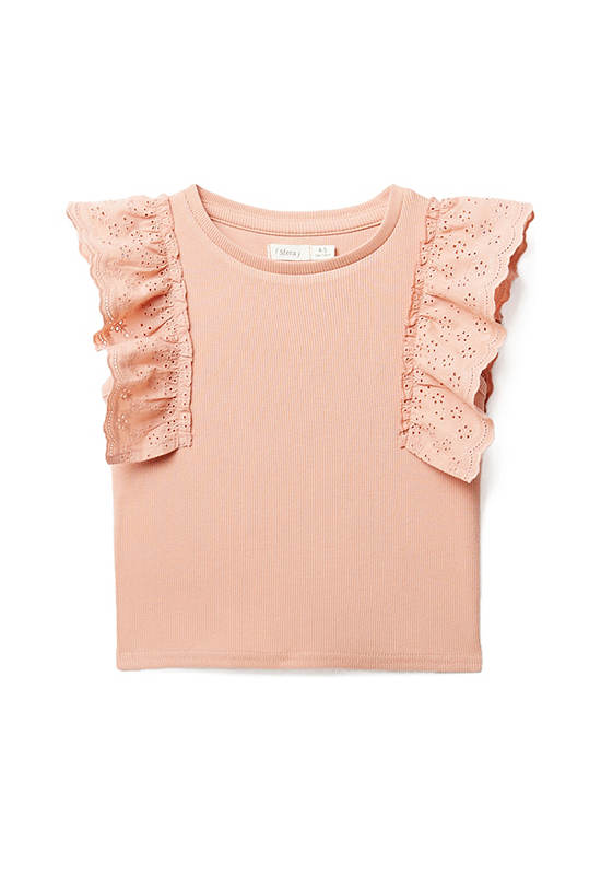 SFERA KIDS Girl T-Shirt Ruffled Ribbed Salmon