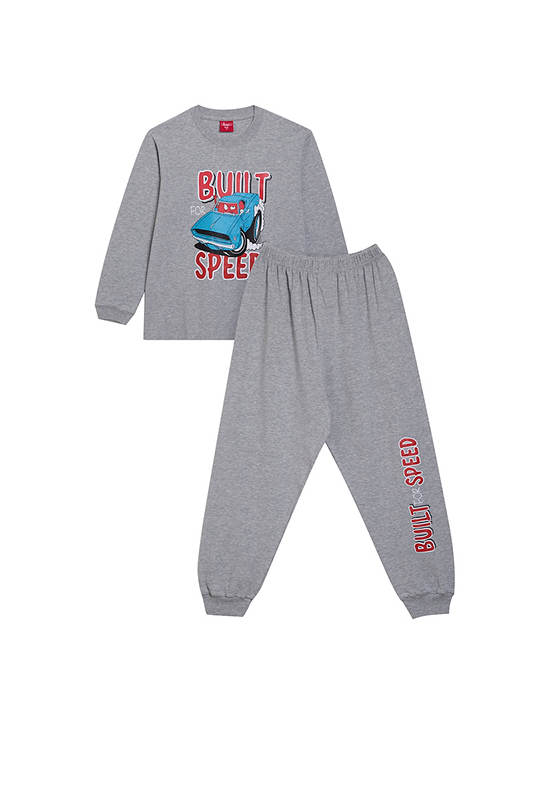 ANGEL KIDS Boy Pyjamas Set Long Sleeves Cuffs T-shirt + Cuffed Pants Build Speed Print Grey