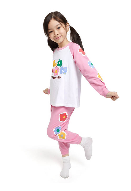 ANGEL KIDS Girl Pyjamas Set Long Sleeves Shirt + Pants Floral Print Pink