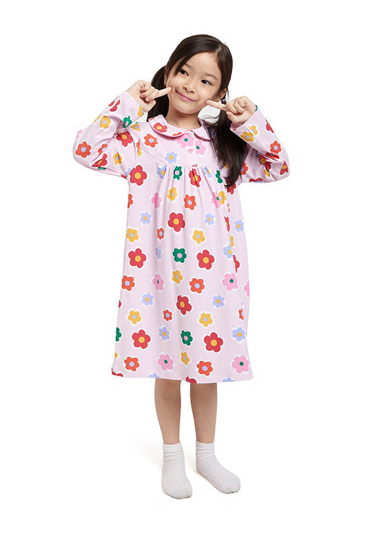 ANGEL KIDS Girl Night Dress Long Sleeves Floral Print Pink
