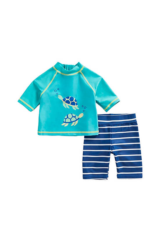 MOTHERCARE Boy Toddler Swim Set Rash Vest And Shorts UPF50 Turtle Print Multi-Color