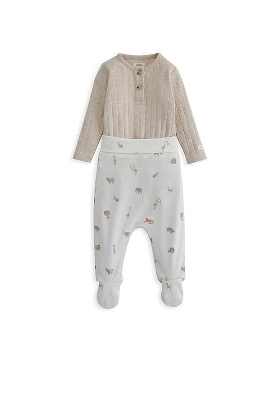 MAMAS & PAPAS Unisex Toddler Set Jumpsuit Long Sleeves + Leggings Ribbed Safari 2 Pcs Cream