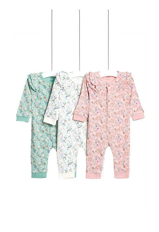 MARKS & SPENCER KIDS Girl Toddler Sleepsuits Pure Cotton Floral 3 pk Multi-Color