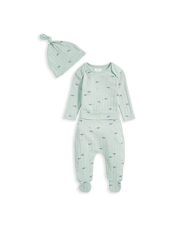MAMAS & PAPAS Boy Infant bodysuit Outfit Set Whale 3 pcs Green