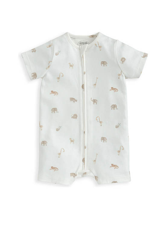 MAMAS & PAPAS Baby Romper Safari Asymmetric Zip All-in-One Cream