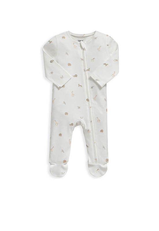 MAMAS & PAPAS Unisex Toddler Bodysuit Long Sleeves Safari All Over Print All In One Zip Cream