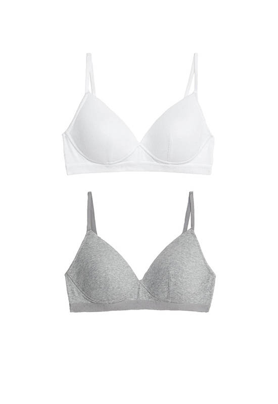 Marks & Spencer Girl First Bras 2pk Non Wired Cotton Rich Ribbed White Mix