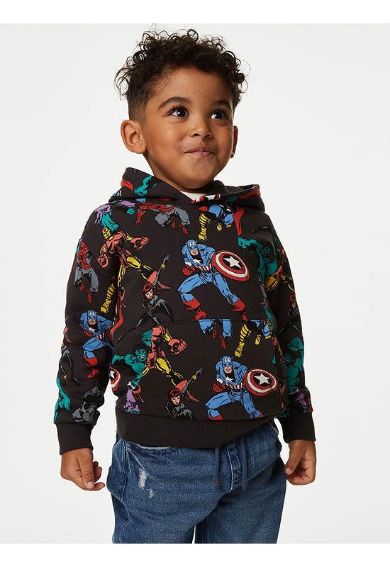 MARKS & SPENCER KIDS Boy Toddler Hoodie Cotton Rich Marvel Charcoal Mix