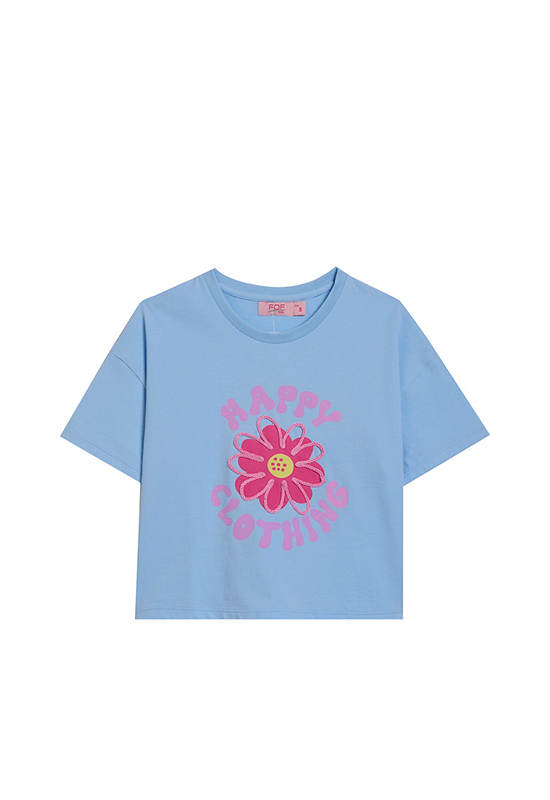 FOF KIDS Girl T-Shirt Short Sleeves Floral Print Light Blue