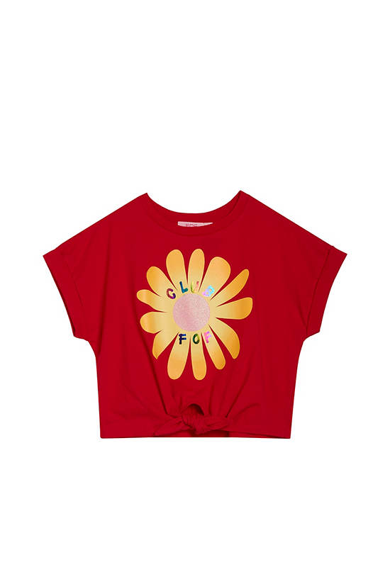 FOF KIDS Girl T-Shirt Sleeveless Crew Neck Flower Print Red