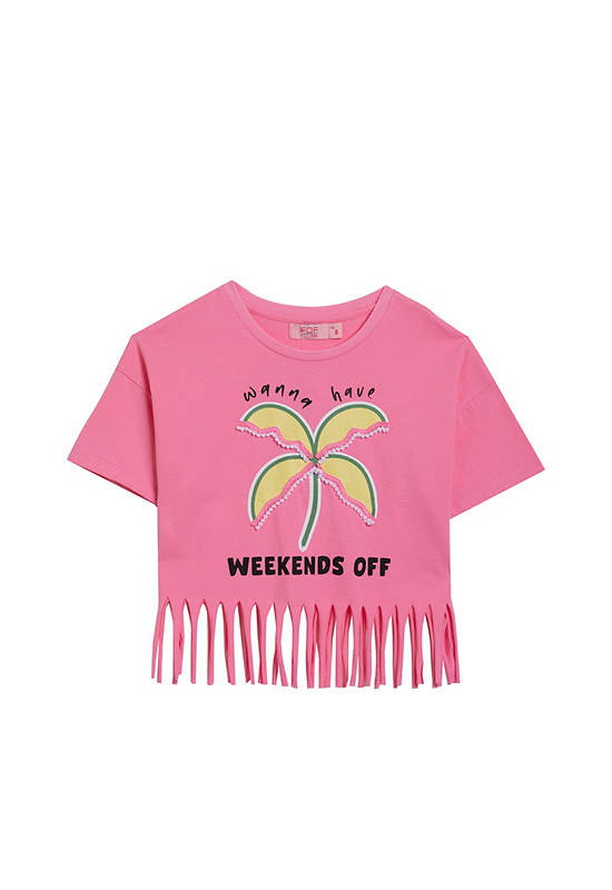 FOF KIDS Girl T-Shirt Graphic Print With Fringe Pink