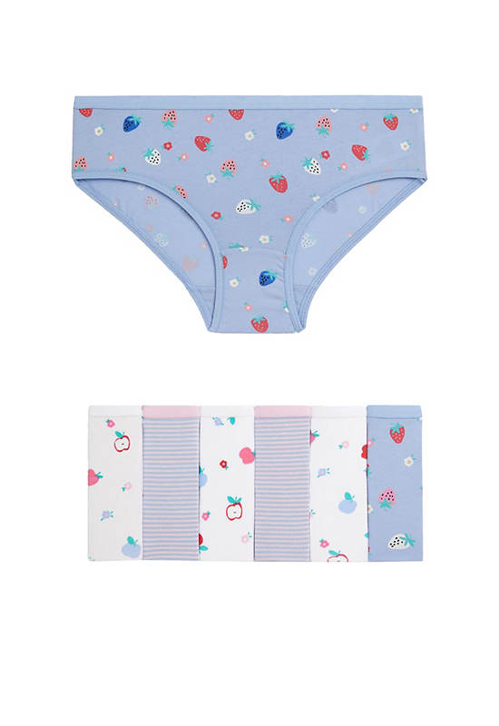 MARKS & SPENCER KIDS Girl Toddler Knickers Cotton with Stretch Fruit Print 7 Pack Multi-Color