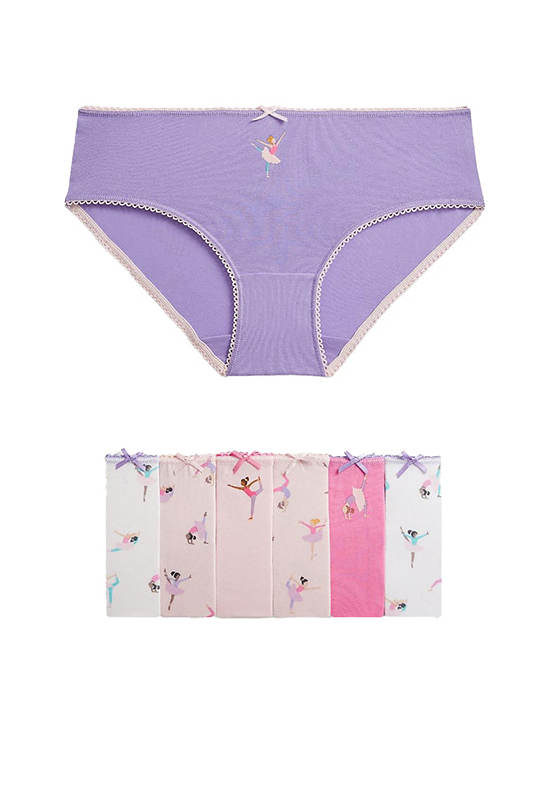 MARKS & SPENCER KIDS Girl Toddler Knickers Cotton with Stretch Ballerina 7 Pack Multi-Color