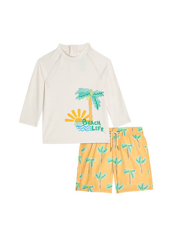 MARKS & SPENCER KIDS Boy Toddler Swim Set Palm Print 2 Pc Yellow Mix
