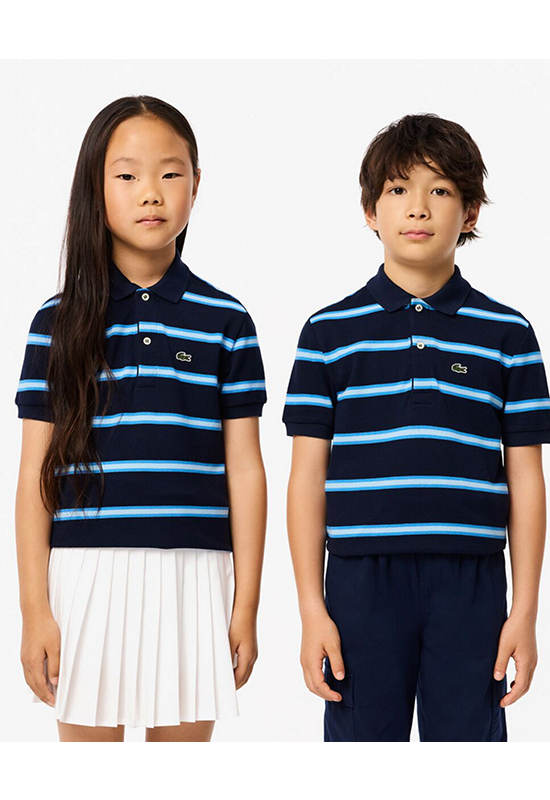 LACOSTE Striped Petit Piqué Polo Shirt Blue