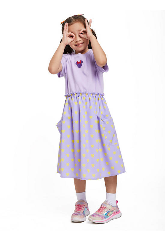 FOF KIDS Girl Dress Disney Heart Printed Purple