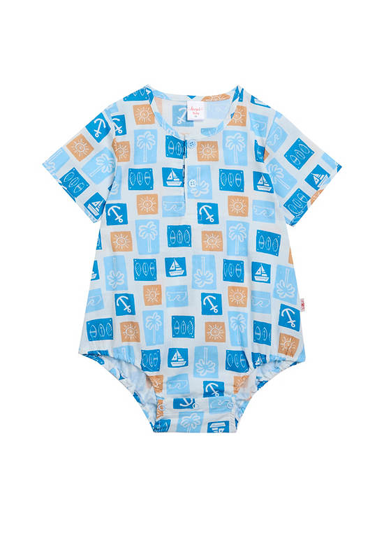 Angel Baby Infant Romper Short Sleeves Summer Sail Print Blue
