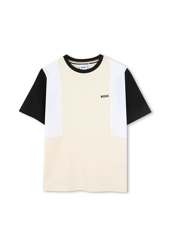 BOSS KIDS Boy T-Shirt Short Sleeves Colour Blocking Beige