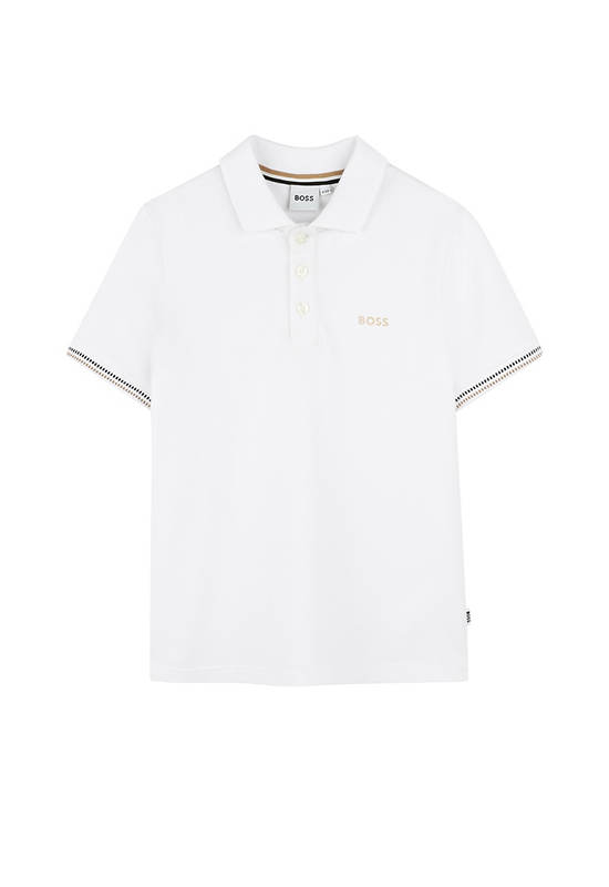 BOSS KIDS Boy Polo Shirt Short Sleeves Ribbed Cuffs Button Placket White