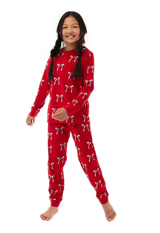 MARKS & SPENCER KIDS Girl Toddler Pyjamas Christmas Fleece Bow Red