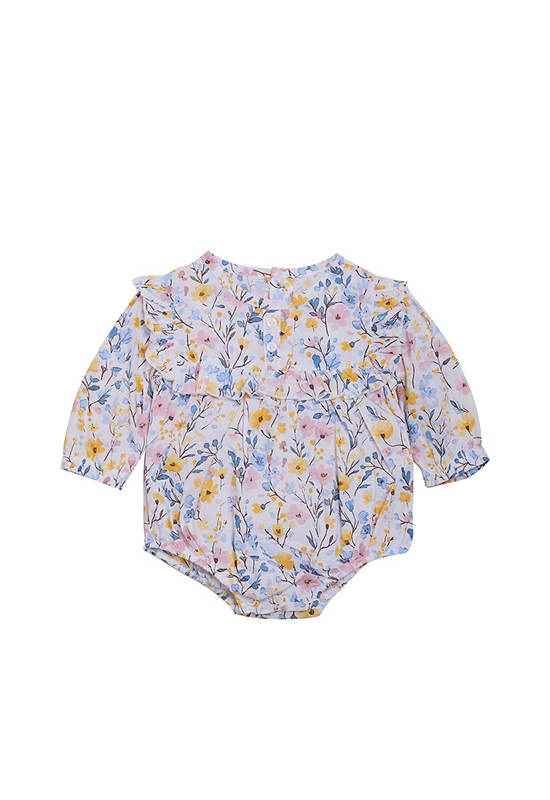 Angel Baby Girl Toddler Romper Long Sleeves Floral Print Multi-Color