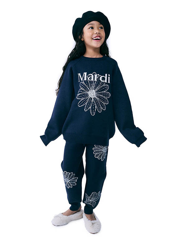 MARDI MERCREDI LES PETITS Kids Jacquard Knit Pants Navy Ivory