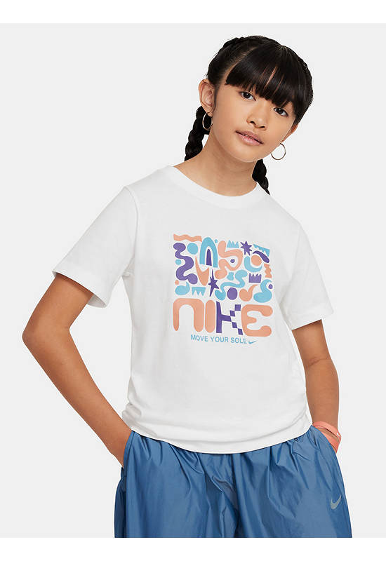 NIKE KIDS Big Kids Girl Boxy Print T-Shirt FJ6785-113 Coconut Milk