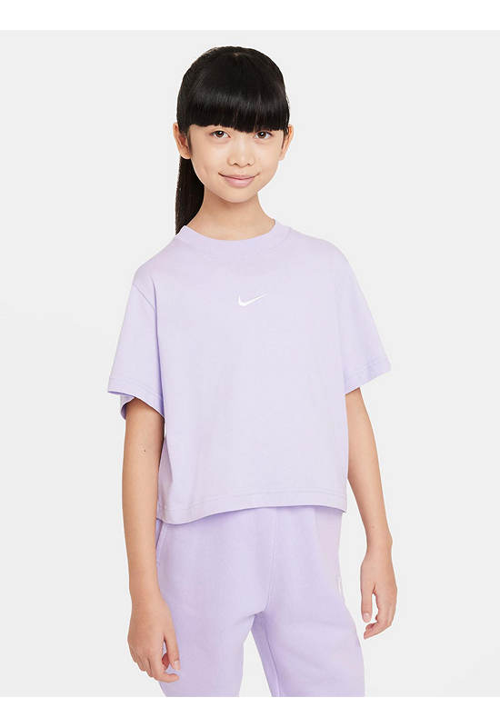 NIKE KIDS Girl Boxy T-Shirt Short Sleeves Nike Sportswear Essential Hydrangeas/White